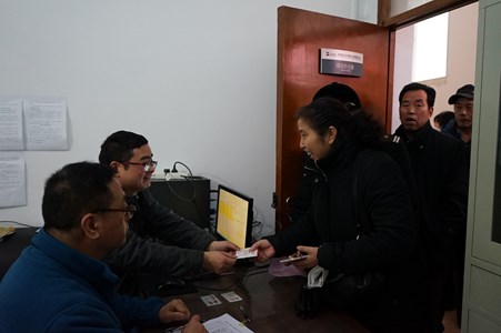 中心工作人員為退休職工發(fā)放春節(jié)米面油領(lǐng)物卡