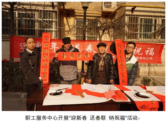 金雞唱出千家喜,春帖換來萬家新。臨近春節(jié),年味漸濃,職工服務(wù)中心為托管退休職工春節(jié)“送溫暖”活動(dòng)正如火如荼地進(jìn)行著。1月22日,中心分別在5個(gè)托管家屬院開展了“迎新春 送春聯(lián) 納祝?!被顒?dòng),邀請(qǐng)退休職工劉定岐老人和中心書法愛好的年輕員工一同揮毫潑墨,為廣大職工群眾義務(wù)書寫春聯(lián),送去節(jié)日的祝福。