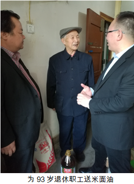 在米面油發(fā)放工作臨近尾聲之際,我部員工把行動(dòng)不便退休老同志的地址列成清單,利用中午休息時(shí)間,將米面油送到他們家中。每到一戶,老同志總是緊握我們的雙手,淚花在眼里閃爍,豎起大拇指,不斷地說(shuō)“謝謝!謝謝!”“你們辛苦了”“單位沒(méi)有忘記我們”,每到這時(shí),我們心里也莫名感動(dòng)。