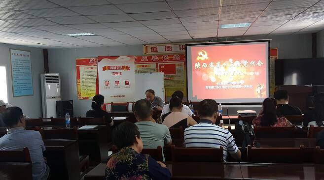 根據(jù)中心黨委關(guān)于2017年離退休黨員社區(qū)化管理的要求,第一黨總支積極與所在轄區(qū)的龍首原社區(qū)進(jìn)行溝通,積極搭建“社企共建”黨員活動平臺,讓離退休黨員有效的參與社區(qū)黨員活動。在宣講會開始前,首先由社區(qū)第一書記羅健同志帶領(lǐng)全體黨員面向黨旗重溫入黨誓詞,宣誓結(jié)束后向黨員傳達(dá)了省十三次黨代會精神,最后社區(qū)黨支部書記張慧就此次聯(lián)合黨建活動進(jìn)行點評。