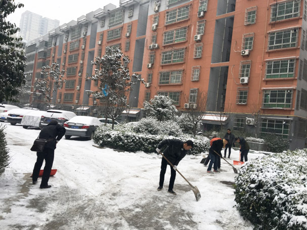 1月25日,2018年的第二場(chǎng)雪光臨了古都西安。潔白的雪花讓中心管理小區(qū)變的銀裝素裹、美景如畫的同時(shí),也給居住在小區(qū)的廣大住戶出行帶來了些許困擾。為了確保小區(qū)住戶安全出行,中心物業(yè)全體工作人員積極響應(yīng)市委、市政府號(hào)召,貫徹執(zhí)行 “以雪為令,邊下邊掃,雪停路凈”的指示精神,按照中心統(tǒng)一安排,資產(chǎn)運(yùn)營(yíng)部第一時(shí)間向各物業(yè)分中心發(fā)出了關(guān)于加強(qiáng)除冰掃雪,確保小區(qū)安全暢通的通知。各物業(yè)分中心也積極響應(yīng),在小區(qū)全面開展除冰掃雪活動(dòng),戰(zhàn)斗在風(fēng)雪之中,全力保障小區(qū)住戶暢通出行。