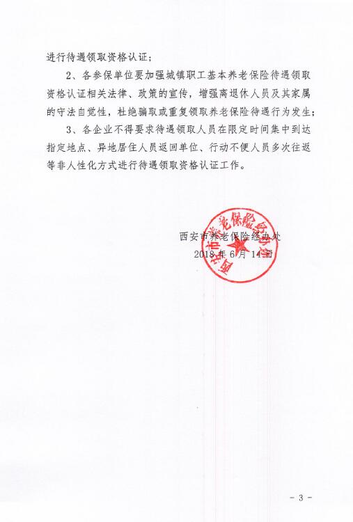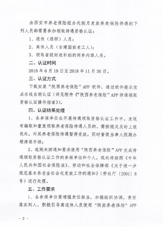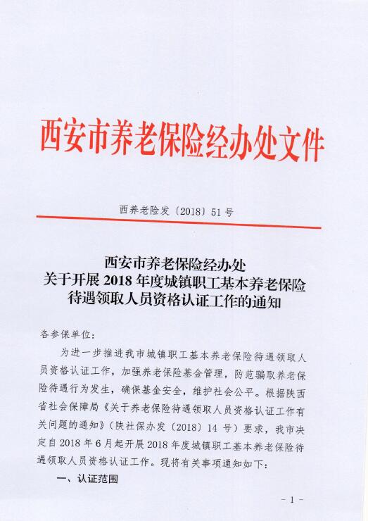 按照西安市養(yǎng)老保險(xiǎn)經(jīng)辦處《關(guān)于開展2018年度城鎮(zhèn)職工基本養(yǎng)老保險(xiǎn)待遇領(lǐng)取人員資格認(rèn)證工作的通知》(西養(yǎng)老險(xiǎn)發(fā)【2018】51號(hào))文件要求,為了確保廣大代管退休職工養(yǎng)老金正常發(fā)放,請(qǐng)各位退休職工按照規(guī)定時(shí)間進(jìn)行資格認(rèn)證。具體認(rèn)證政策及操作指南附后。