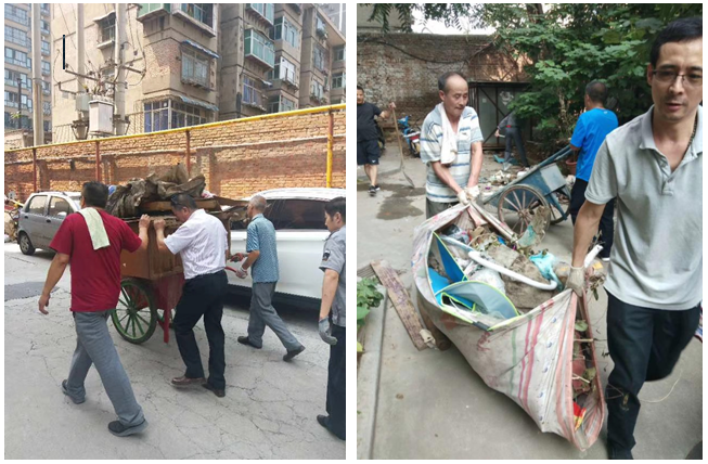友誼路家屬院是此次活動的重點整治對象。中心黨員干部帶頭,對小區(qū)內衛(wèi)生環(huán)境進行清理,下大力氣對拐角、盲區(qū)及綠化帶等隱蔽位置徹底清掃。物業(yè)工作人員王建民同志在清理廢舊雜物時,腳不慎被玻璃扎傷,但他輕傷不下火線,對傷口進行了簡單的處理包扎后,又繼續(xù)堅持回到工作一線,與大家一起完成垃圾清理工作。他忘我的工作精神感染了大家,也得到職工群眾的支持和配合。