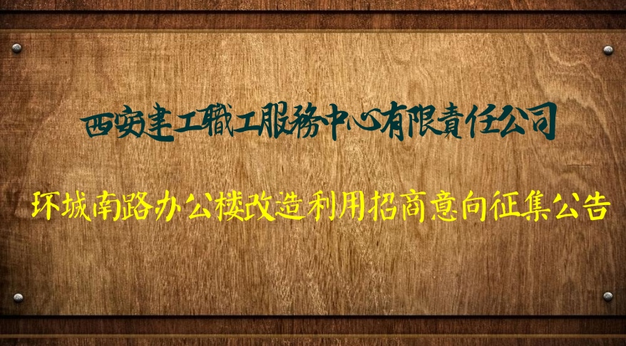 西安建工職工服務(wù)中心有限責(zé)任公司擬對(duì)位于西安市碑林區(qū)環(huán)城南路長(zhǎng)勝街108號(hào)老舊辦公樓進(jìn)行改造、利用、招商意向征集,特發(fā)布此公告。