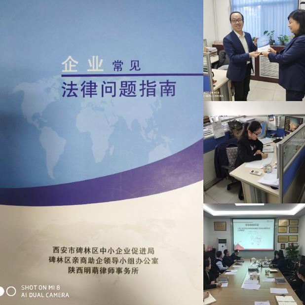 今年以來,中心業(yè)務涉及的相關國家政策法規(guī)相繼出臺、修訂,結合各部門在日常工作中遇到疑難法律問題,綜合服務部主動作為,在認真總結往年普法工作經(jīng)驗的基礎上,積極和合作律所及政府部門溝通,采取多種形式,常態(tài)化推進中心普法宣傳工作。一方面及時從碑林區(qū)中小企業(yè)促進局獲取了《企業(yè)常見法律問題指南》,并借助該書涉及企業(yè)管理實踐和涉法問題處理等方面內(nèi)容,開展專題法律培訓;另一方面,通過開展贈書活動,號召各部門根據(jù)實際工作情況自主安排法律知識學習。與此同時,為鞏固培訓效果,綜合服務部還結合《企業(yè)常見法律問題指南》一書,制作了普法知識問卷,在中心組織開展知識測試活動,充分調(diào)動中心員工的學習積極性,達到人員、時間、內(nèi)容、效果“四落實”。
