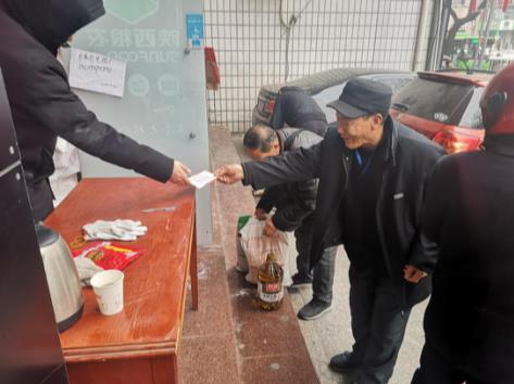 退休職工領(lǐng)取米面油現(xiàn)場照片