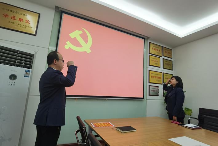 儀式在莊嚴(yán)的《國(guó)際歌》中拉開(kāi)序幕。機(jī)關(guān)支部書(shū)記巨瑩首先宣讀了中心黨委關(guān)于同意吸收預(yù)備黨員的批復(fù),并向預(yù)備黨員郗媛同志表示了祝賀。隨后,在支部宣傳委員張強(qiáng)同志的帶領(lǐng)下,郗媛同志面向黨旗,舉起右手,莊嚴(yán)宣誓,表達(dá)對(duì)黨的忠誠(chéng)、為共產(chǎn)主義事業(yè)奮斗終生的決心。宣誓畢,