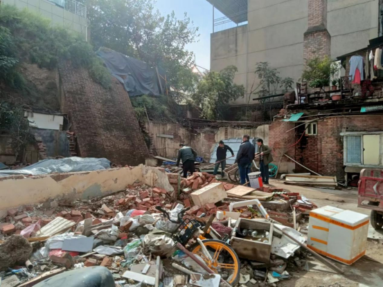 這棟始建于70年代磚木結(jié)構(gòu)的危房,由于年代久遠(yuǎn),已出現(xiàn)局部開(kāi)裂和傾斜現(xiàn)象,存在嚴(yán)重安全隱患。為保障該房屋所住居民及附近群眾的生命財(cái)產(chǎn)安全,消除安全隱患,防止房屋垮塌事故發(fā)生,綜合經(jīng)營(yíng)部與西一路街道辦事處就此問(wèn)題進(jìn)行多次的協(xié)調(diào)溝通,就消除安全隱患的解決辦法雙方達(dá)成一致,決定對(duì)該危房進(jìn)行拆除“解?!保?/span>同時(shí)提前上門(mén)入戶(hù)動(dòng)員,確保危房?jī)?nèi)住戶(hù)全部遷出。目前,危舊平房已順利完成拆除,已進(jìn)入垃圾清運(yùn)階段。