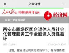 8月底,“幸福之路”在雁塔區(qū)等駕坡街道設(shè)立的國企退休人員服務(wù)工作站正式運行后,《人民日報-中國經(jīng)濟周刊》《人民日報-中國城市網(wǎng)》《中國新聞網(wǎng)》《中華網(wǎng)》《勞動網(wǎng)》《原點新聞》《西安發(fā)布》《三秦都市報》《奮斗陜西》等多家權(quán)威媒體競相報道,形成良好的社會影響和宣傳氛圍。
