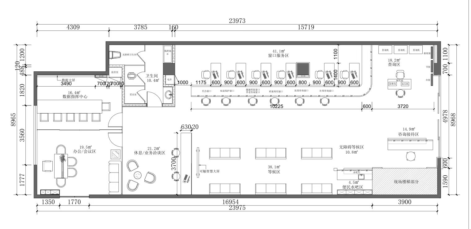 3、項(xiàng)目概況:西安建工職工服務(wù)中心有限責(zé)任公司擬將建工路中坤廣場(chǎng)A區(qū)6號(hào)樓一樓西安市國(guó)有企業(yè)退休人員服務(wù)大廳內(nèi)部局部改造,服務(wù)大廳面積為270㎡,包括服務(wù)前臺(tái)、洽談區(qū)、數(shù)據(jù)中心等?,F(xiàn)擬在保障服務(wù)大廳現(xiàn)有基本窗口功能分區(qū)的基礎(chǔ)上,劃設(shè)出約90㎡-120㎡作為后期幸福之路大藥房搬遷至服務(wù)大廳日常經(jīng)營(yíng)區(qū)域。本次詢價(jià)為西安市國(guó)有企業(yè)退休人員服務(wù)大廳局部改造。